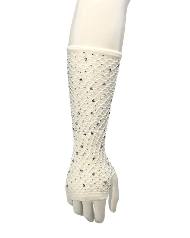 Diamanté Fishnet Gloves – White