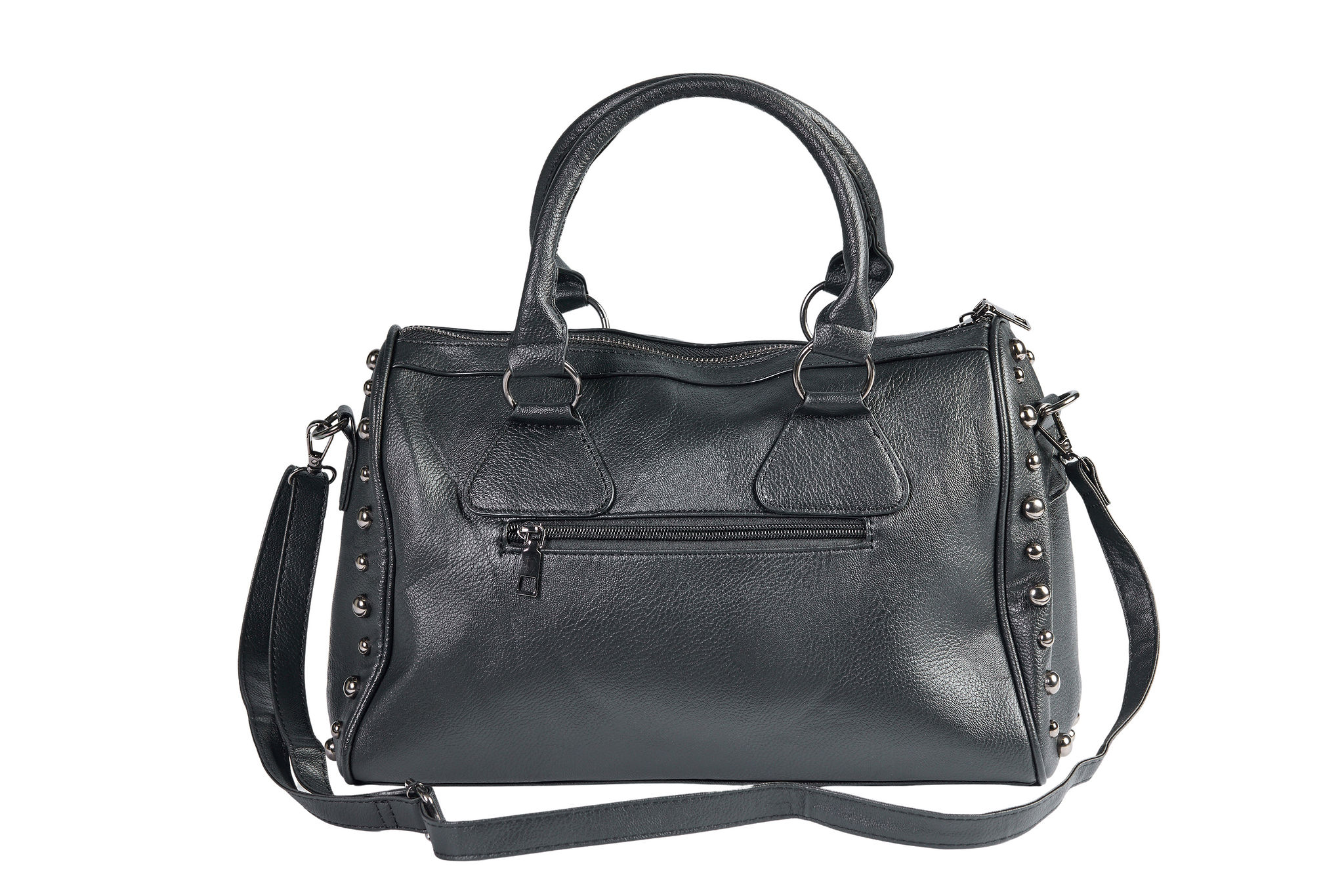 • Studded Details: Adorned with numerous silver-tone metal rivets, including a large skull pattern formed by studs on the front, adding a distinct rocker or gothic flair.